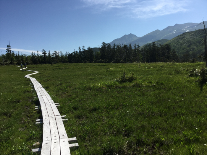 1時間半ほどの樹林帯あるきの後、ようやく視界が開け、木道が現れます。