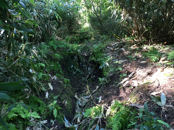路面にはとくに施工はされておらず、ぬかるみや溝状にえぐれた場所もあり、我慢を強いられます(写真①)。