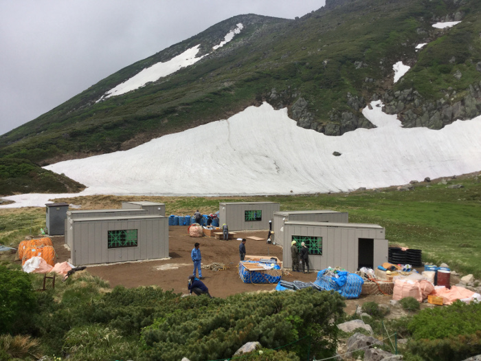 高原温泉から緑岳にいたる登山道は雪解けが進んできました。