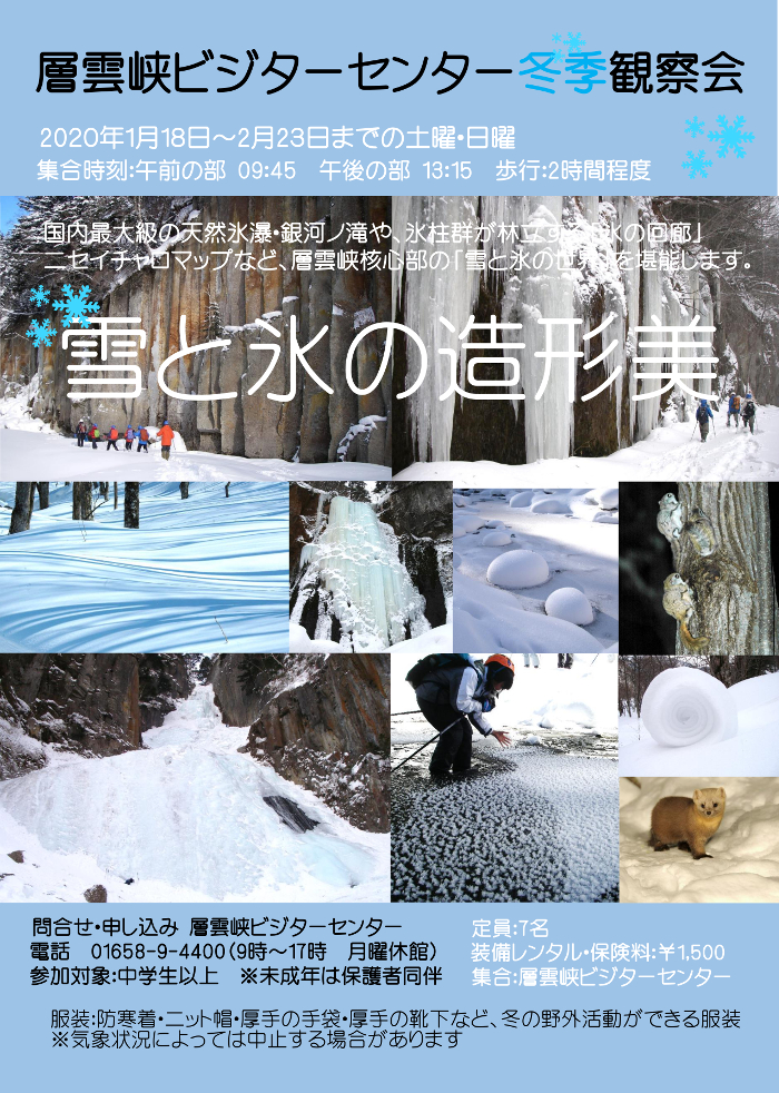 層雲峡ビジターセンター冬季観察会「雪と氷の造形美」
