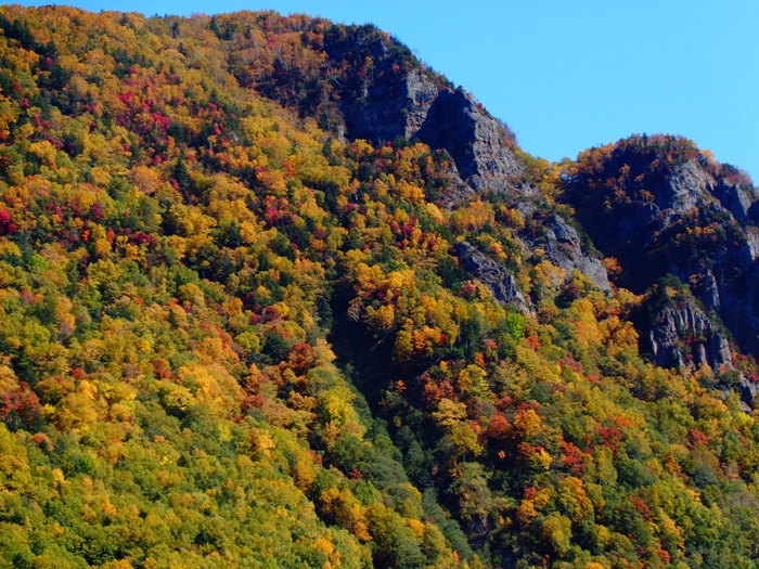 第三雪渓は、落葉期に入りました。また、下部には途切れながら約70m、約140mの雪渓が残っています。