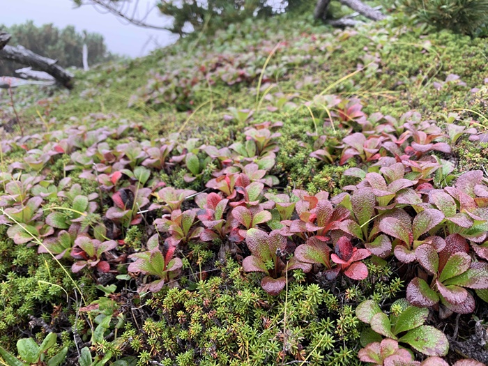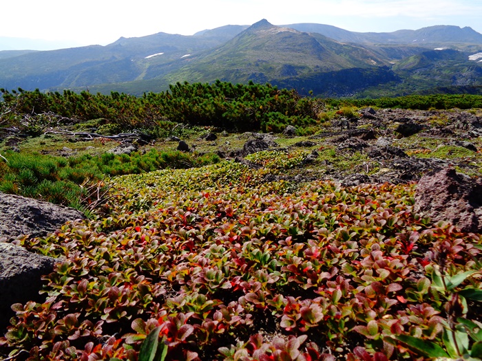 頂上周辺からポン黒岳周辺のウラシマツツジがやや色濃くなり範囲が拡がったことと、