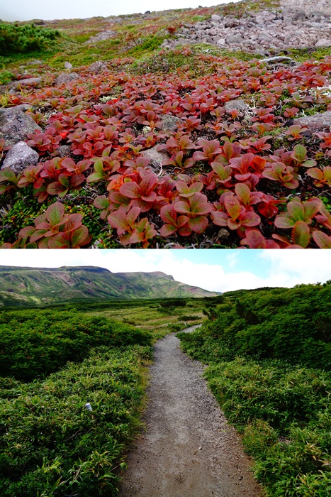 写真:黒岳九合目まねき岩付近と沢筋のウラジロナナカマド(上段)・