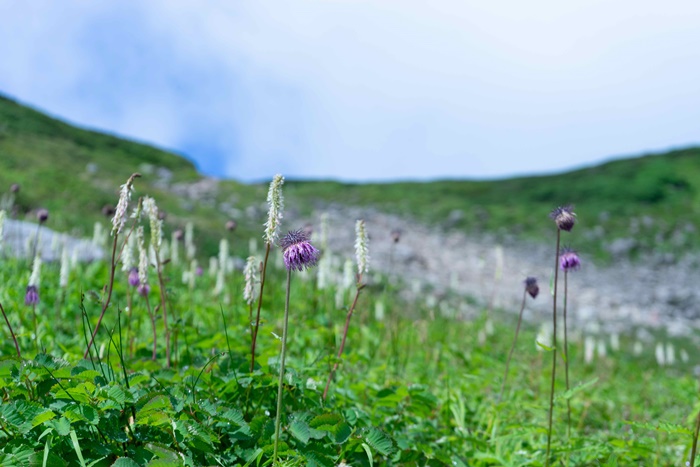頂上周辺のウラシマツツジと新緑様相の雲ノ平(下段) 8/27