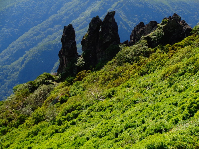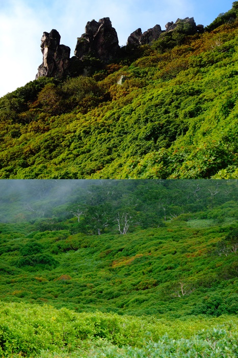 まだまだ「新緑」の様相です。逆に条件が揃った影響なのか、黒岳東斜面の色付きが