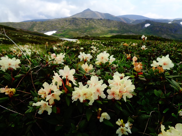 頂上からポン黒岳間は「エゾツツジ」「イワブクロ」も開花しはじめており