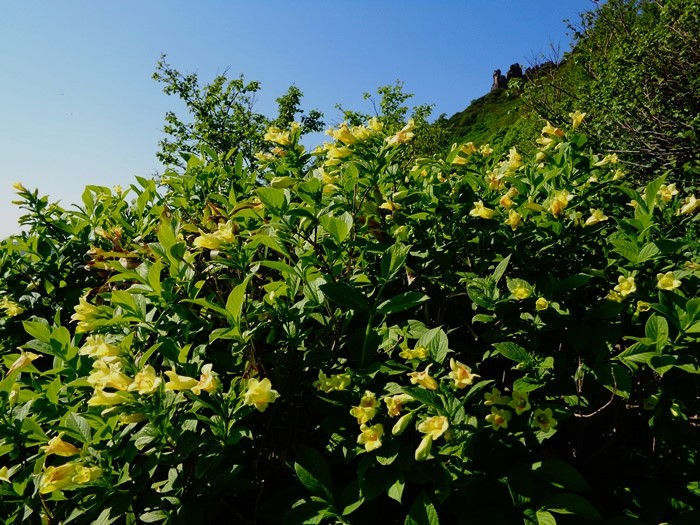 お花は、九合目周辺から「チシマノキンバイソウ」「ウコンウツギ」が