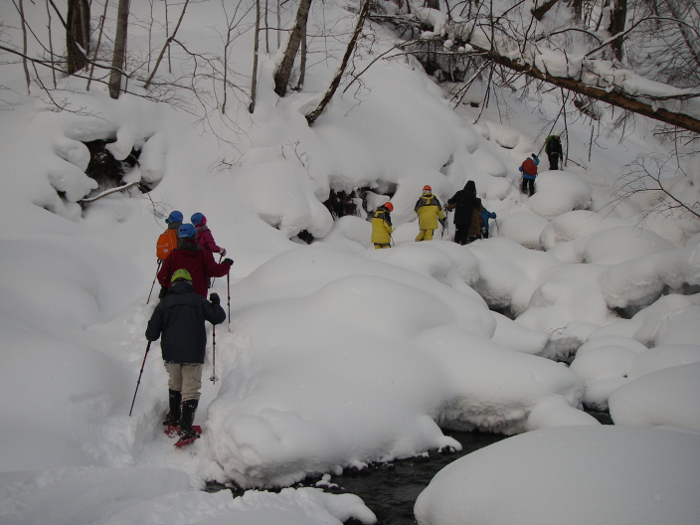 装備レンタル料:¥1,500(ヘルメット・スノーシュー・長靴・ウェーダー)