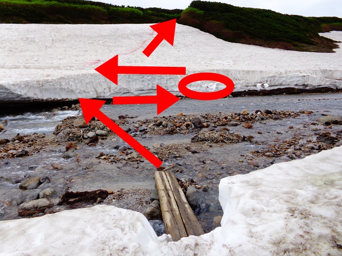 また、例年のように、マウンド状に盛り上がって下部が急傾斜になった場合は、滑落の可能もあります。