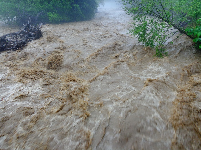 *赤石川ー雪が落ちて川の中を歩きます。大雨の影響で流れも早いです。