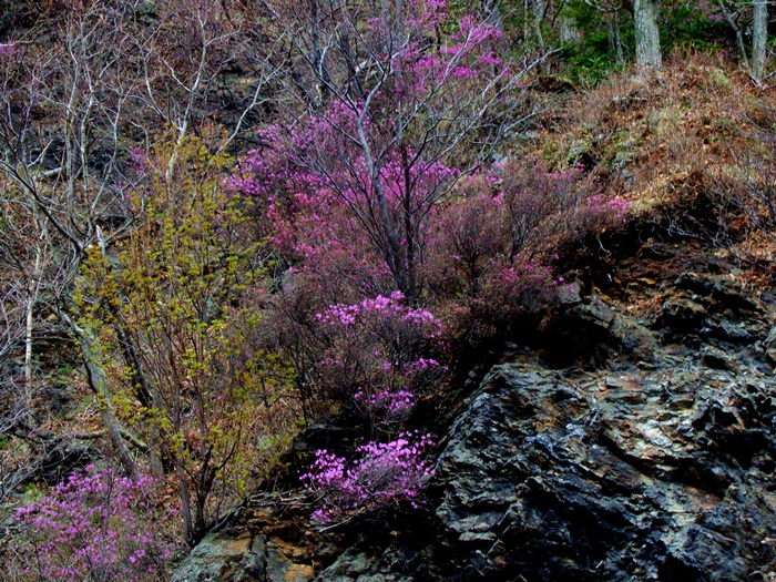 写真:層雲峡峡谷・エゾムラサキツツジ 5/13