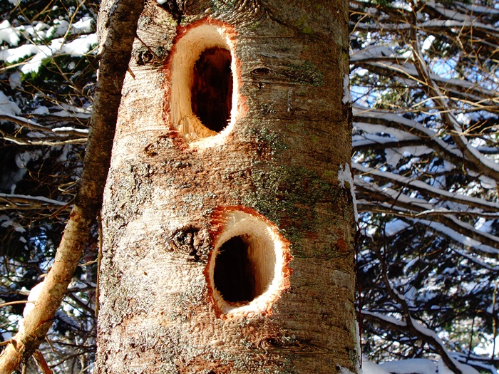散策中には写真の通り、「クマゲラ」の採餌木や