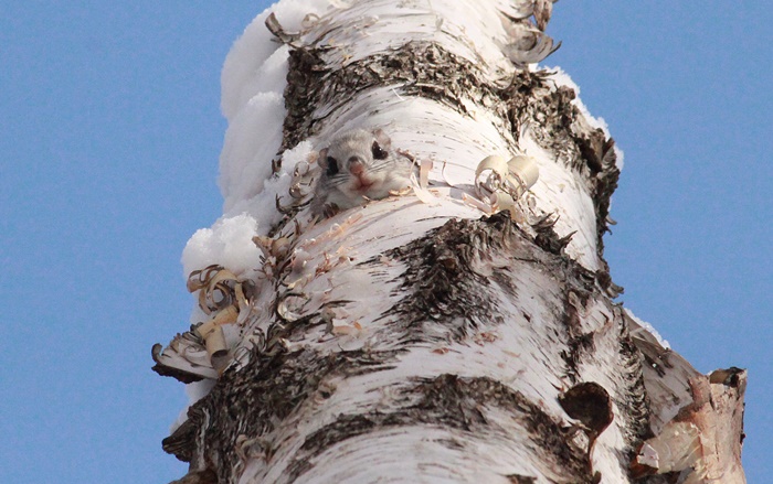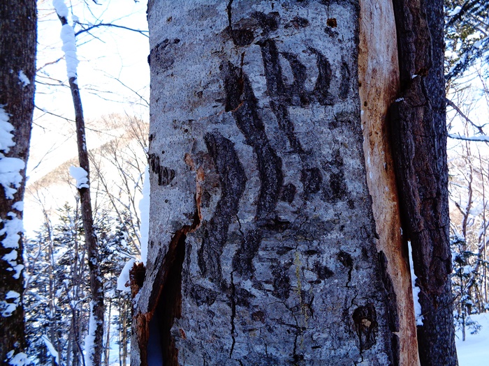 写真:クマゲラ採餌木 ヒグマ爪跡 2/14