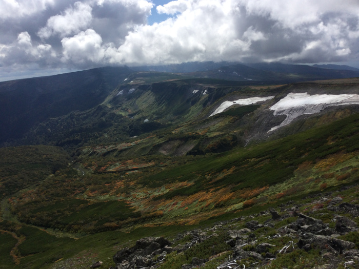 写真:黒岳七合目周辺(ペアリフト乗車中) 烏帽子岳下部(七合目 カムイの森のみち) 9/24